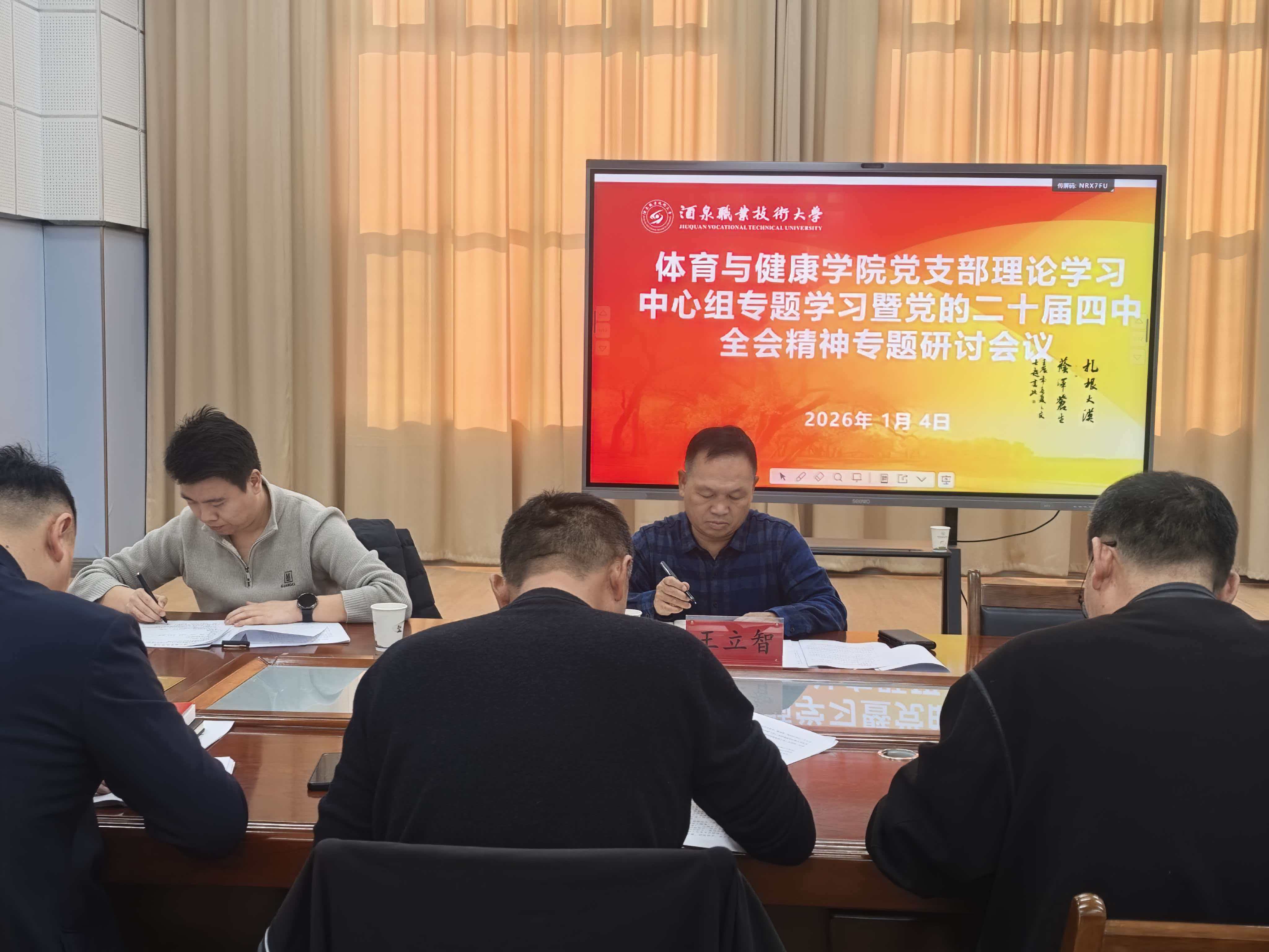 为深入学习贯彻党的二十届四中全会精神,推动学院各项工作高质量发展,近日,体育与健康学院党支部召开了理论学习中心组专题学习暨党的二十届四中全会精神专题研讨会。学校党委指导组成员、学校党委副书记王立智、学院党支部支委成员、院务会成员参加此次会议,共同参与学习研讨,会议由学院党支部书记周小刚主持。