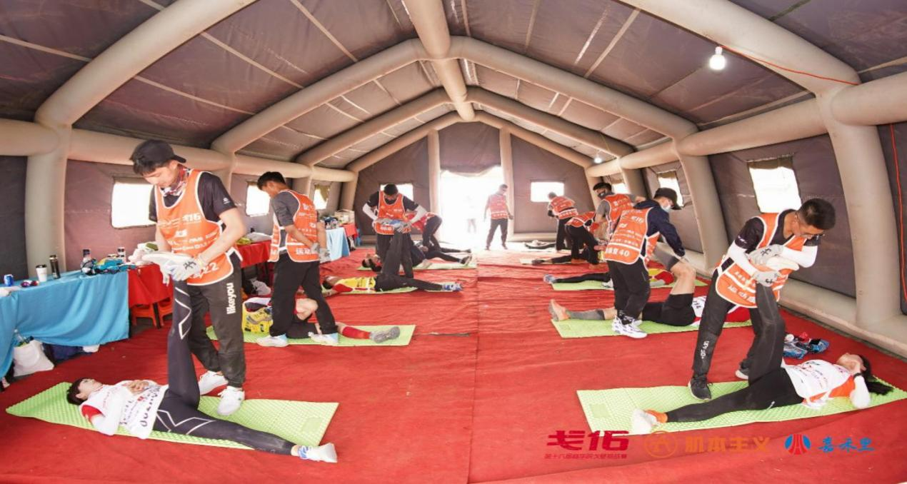 春夏之交的戈壁滩气候无常,白天烈日炎炎,晒的人口干舌燥;晚上寒风习习,冷得人瑟瑟发抖。昼夜温差大,工作环境异常艰苦。但参加保障的师生们昼夜连续作战,不怕苦不怕累,尽心尽力,竭尽全力为每一位戈友们做好赛后康复。每天从蓝色大帐篷里传出的阵阵感谢声,就是对学生们最好的褒奖。学生们在活动中不仅展现出了体育与健康学院的精神风貌,更是用实际行动让学校赢得了良好的社会声誉。