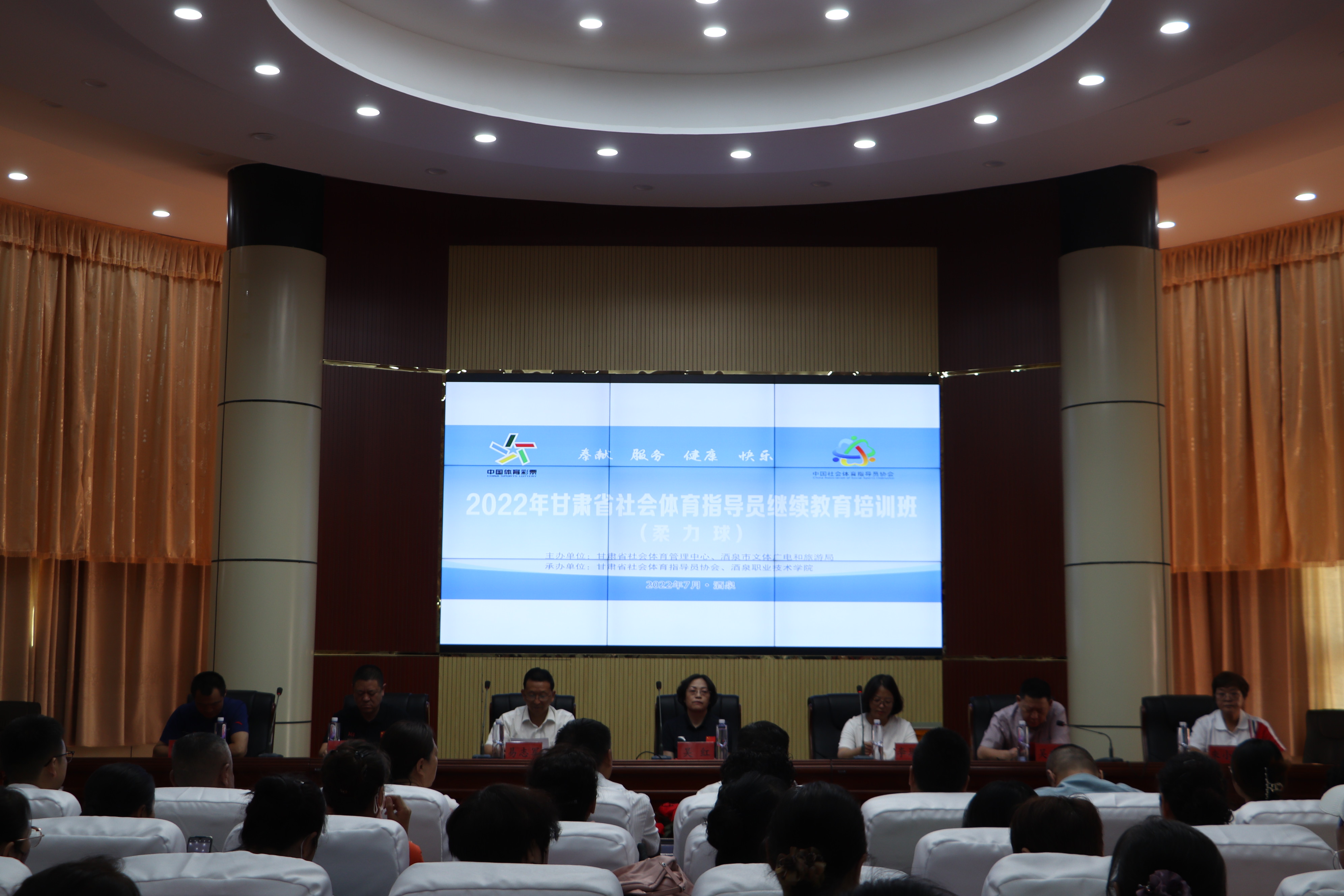 为深入贯彻落实《甘肃省全民健身实施计划(2021-2025年)》,丰富社会体育指导员队伍建设,进一步加强柔力球业务骨干的学习,推动柔力球运动在我省的蓬勃发展。7月3日在酒泉职业技术学院体育馆举行由省社会体育管理中心、酒泉市文体广电和旅游局主办,省社会体育指导员协会、酒泉职业技术学院承办为期三天的2022年甘肃省社会体育指导员继续教育(柔力球)培训。来自全省10个市州及县区的近80名社会体育指导员参加了培训。