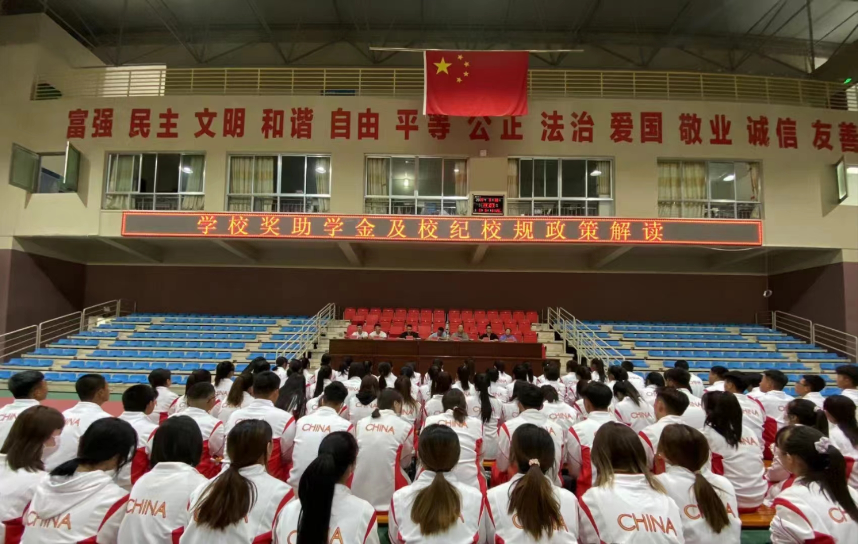 9月30日,体育与健康学院在体育馆开展了学校奖助学金及校纪校规政策解读会。学院领导班子、班主任及全体学生参加了会议,会议由主管学生工作副院长王瑞主持。