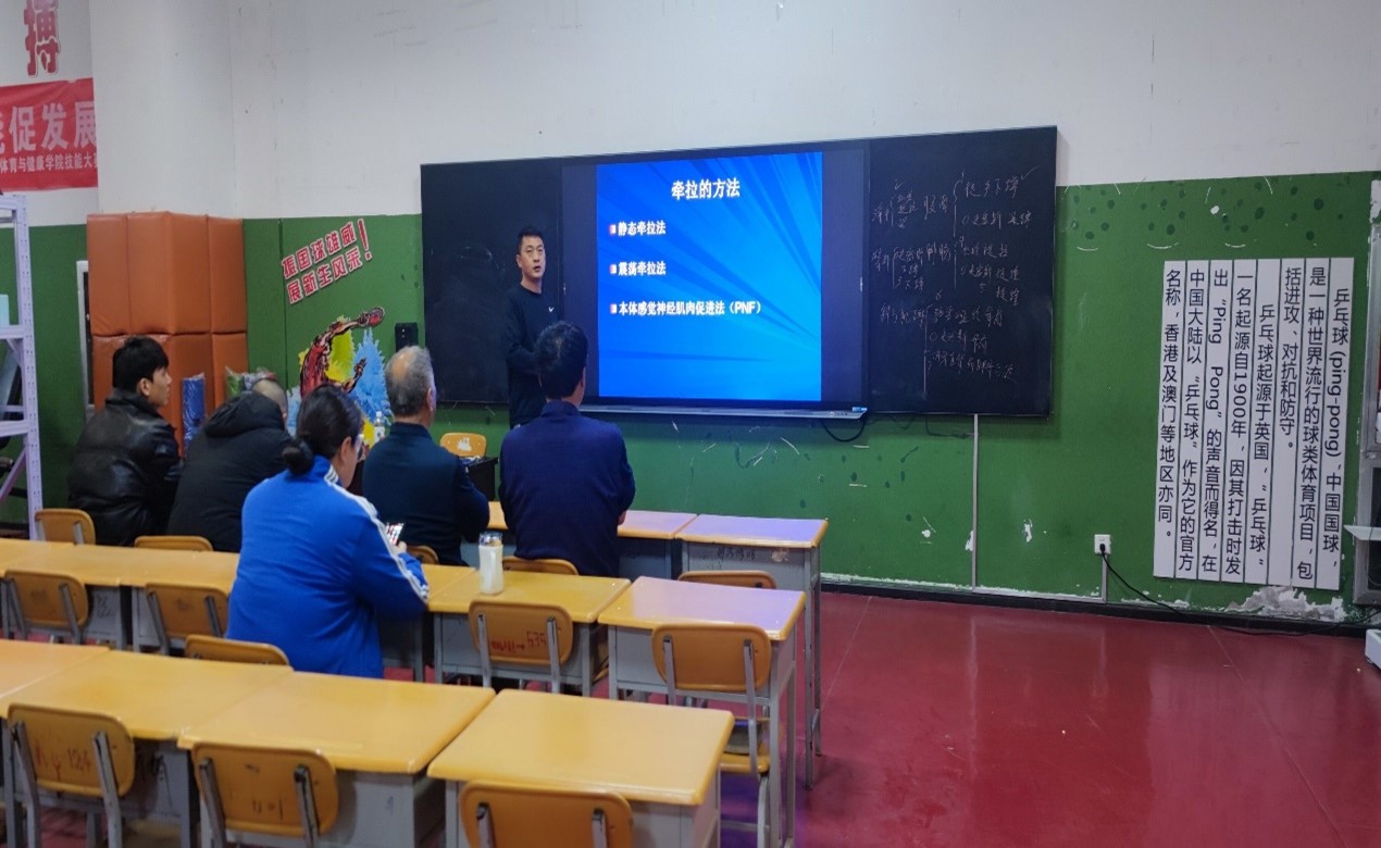 本次活动由健身指导与管理教研室王潇彬老师担任培训老师,从《动态拉伸》、《健身器械的使用方法》、《运动损伤康复及拉伸方法》等内容进行了详细的讲解,并重点进行了实践操作,通过此次培训,进一步提高了我院教师的实践技能操作水平,所学所练有利于更好的开展技能竞赛、教育教学等工作,为进一步推进我院实践教学的高质量发展打下坚实基础。
