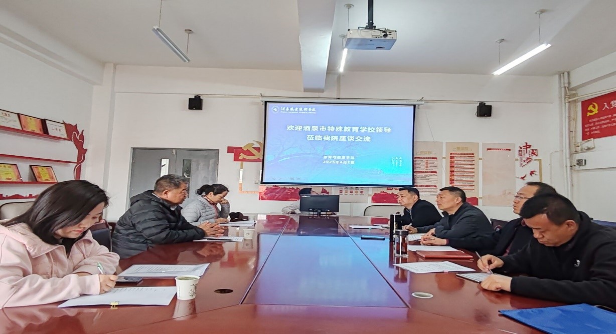 为加强校际合作,推动特殊教育与体育健康事业的深度融合,4月2日,酒泉市特殊教育学校张校长一行与体育与健康学院领导班子,就特殊教育学校体育课程建设、教研活动、特殊群体运动项目指导训练、志愿服务等议题进行座谈交流。