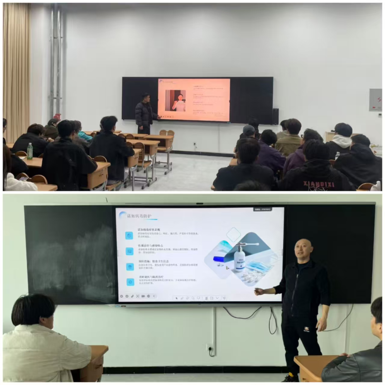班会上,班主任详细讲解了流感、手足口病、水痘、诺如病毒感染等春季常见传染病的症状、传播途径及危害。针对大学生集体生活特点,重点普及防控知识:强调接种疫苗是有效预防手段,指导学生掌握正确洗手、口罩佩戴方法,提醒保持教室、宿舍通风、注重饮食卫生。