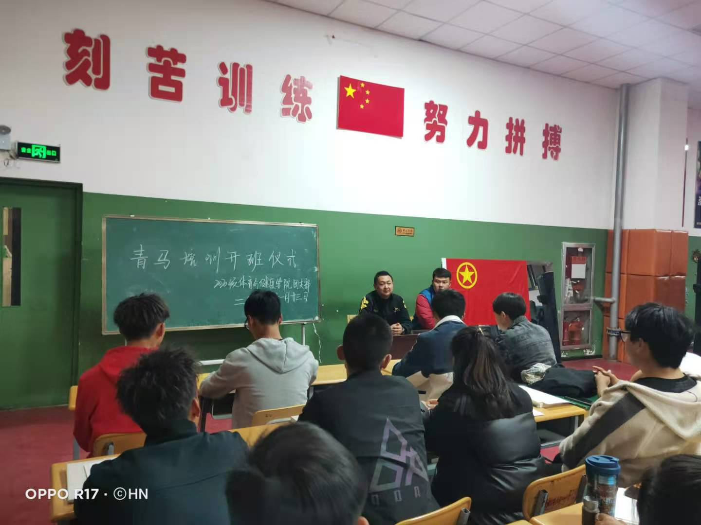 我院“青马工程”于2020年11月13日正式开班,参加人员有体育与健康学院副院长王瑞、20级健身指导与管理班班主任常鑫以及全班同学。