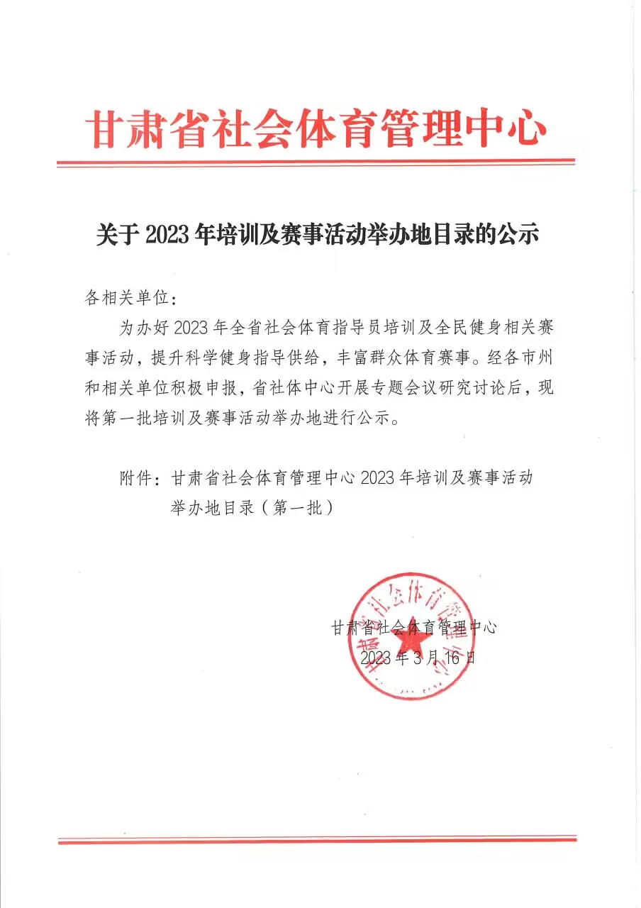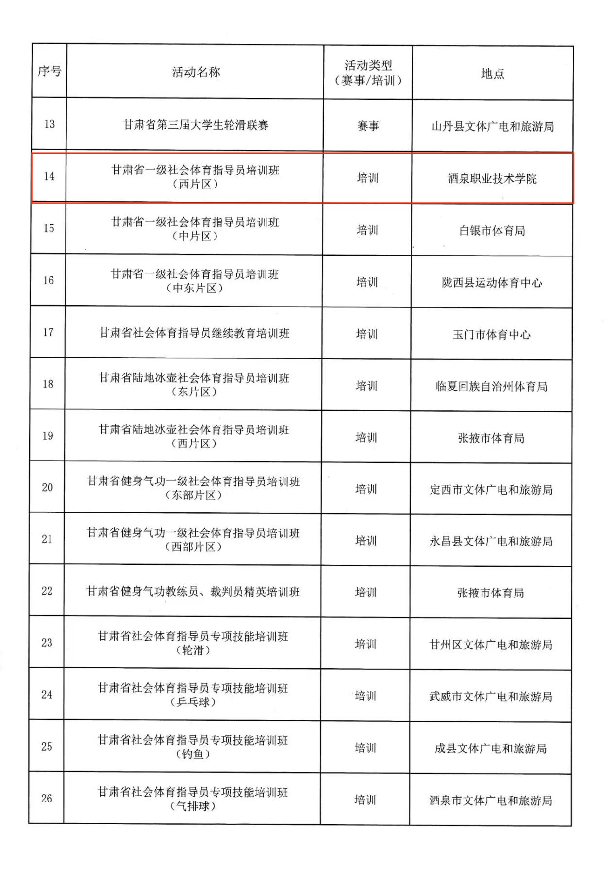 我校成功获得“甘肃省一级社会体育指导员培训班”项目