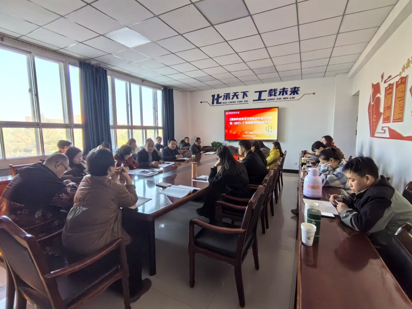 座谈会围绕“警示教育”“师德师风专题学习”“传承分享”“自由发言与交流”等四个议题展开。任小娜同志领学了《酒泉职业技术大学教师职业行为细则(试行)》等师德师风建设六项制度的核心内容。6名老中青教师代表先后发言:老教师分享了从教数十载的工作经验和见证学校变迁的深刻感悟,诠释了“师道”传承的意义;中年骨干教师分享了个人成长与学校发展同频共振的认识,对教学科研、团队建设提出思考与建议;青年教师分享了入职以来的感受、面临的挑战与机遇,表达了对未来的憧憬与规划。随后,参会教师围绕学院教学、管理、服务师生、师德师风建设及个人职业发展中遇到的困惑或需求自由交流发言。