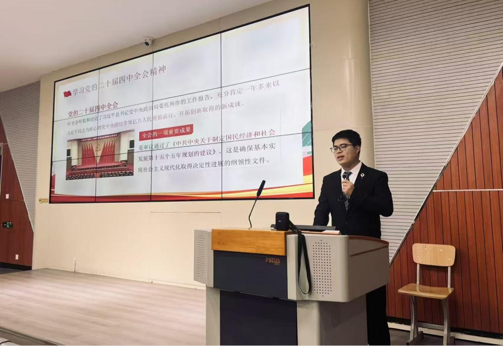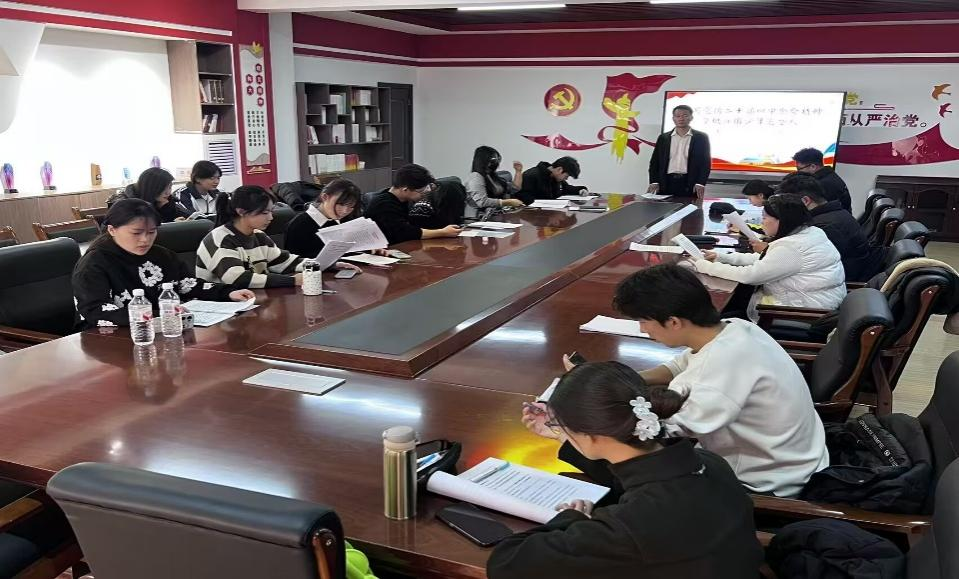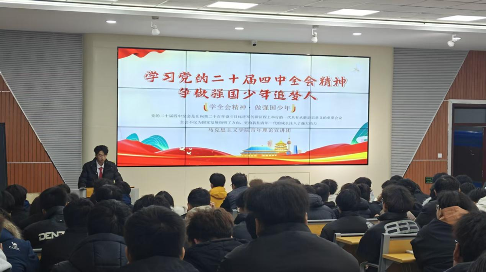 我校马克思主义学院始终将学习宣讲党的二十届四中全会精神作为重要政治任务,总体把握,全面统筹,与各二级学院团委建立联席机制,于2025年12月2日召开了筹备会议,安排部署专项宣讲工作,在“青马协会”内部严格选拔思想坚定、表现突出的16名学生代表,组建“党的二十届四中全会精神”学生宣讲团,并选拔政治素质过硬、理论功底扎实、宣讲经验丰富的骨干教师对宣讲团成员进行专项培训,全力保证专项宣讲活动高质量完成。