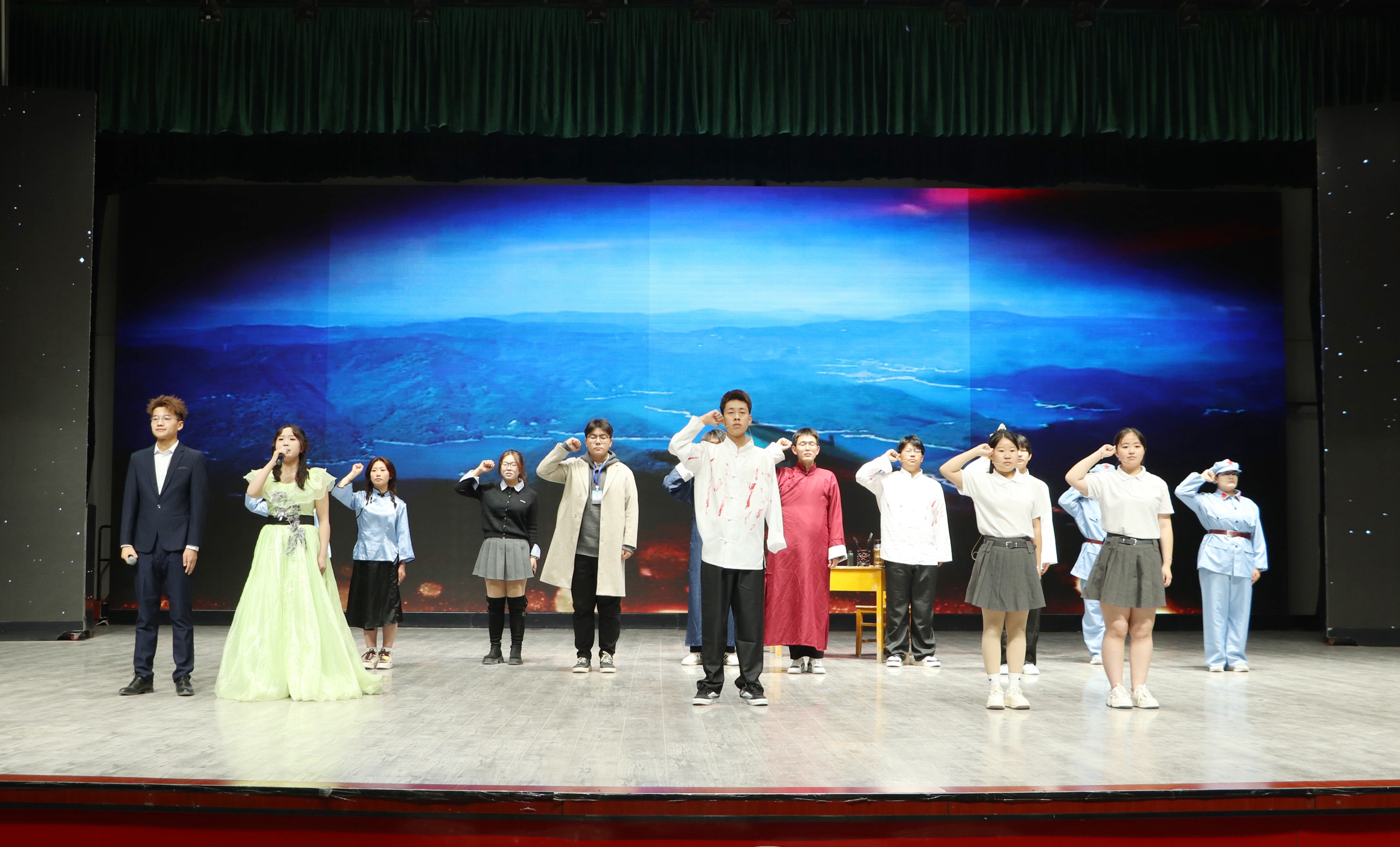 随后,“诵读红色家书 涵养家国情怀”红色经典诵读活动拉开帷幕。《追寻》《以身许国的共产党人》《写在生命边缘的信仰》等十个红色经典诵读节目依次上演。领诵者们以饱满的热情、真挚的情感将革命先辈的家国情怀、坚定信仰娓娓道来。这些红色家书,或是革命先辈在生命边缘对信仰的坚守,或是在烽火岁月里对家人的深情牵挂,每一封都承载着厚重的历史记忆与精神力量。领诵者们通过声情并茂的诵读,让在场师生仿佛穿越时空,真切感受到革命先辈为了国家独立、民族解放舍生取义的崇高精神。